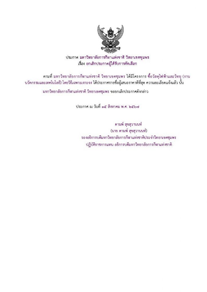 ประกวดราคาจ้างก่อสร้างโรงยิมมวย วิทยาเขตชุมพร